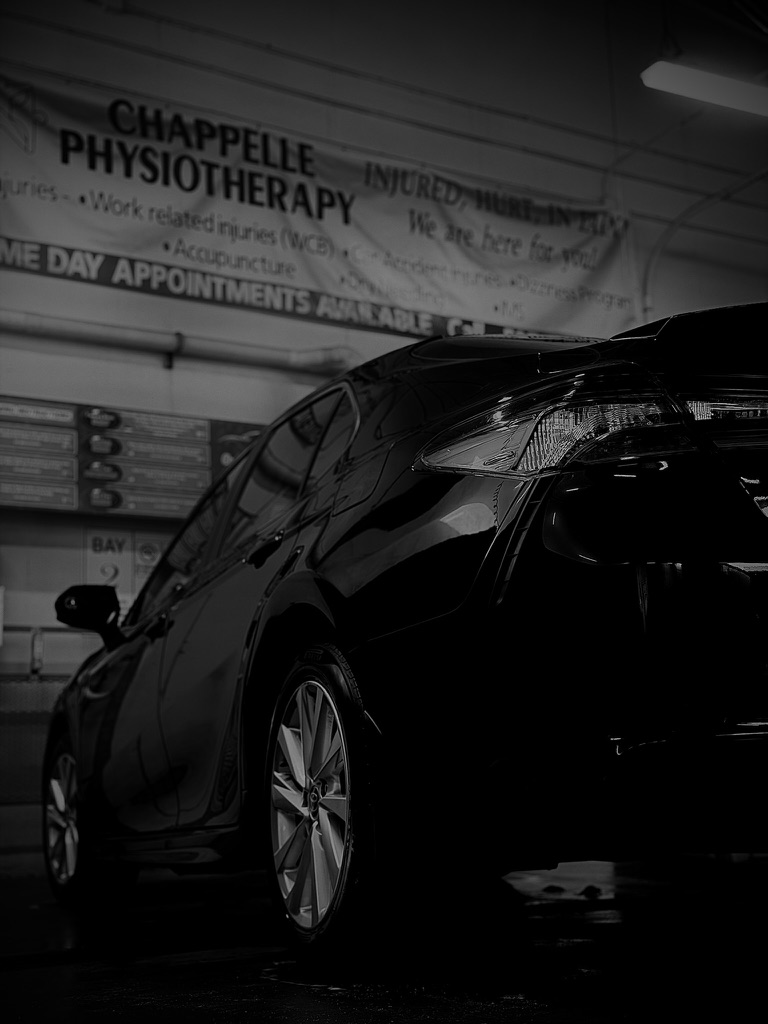 A sleek, low-light composition focused on detail, reflections, and atmosphere.